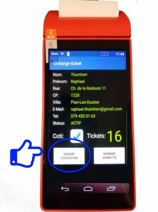 Si le membre n'est pas à jour mais règle sa cotisation directement par carte bancaire, il est possible “d'activer” immédiatement le privilège d'achat de ticket pour autant que le membre aie sa carte sur lui.